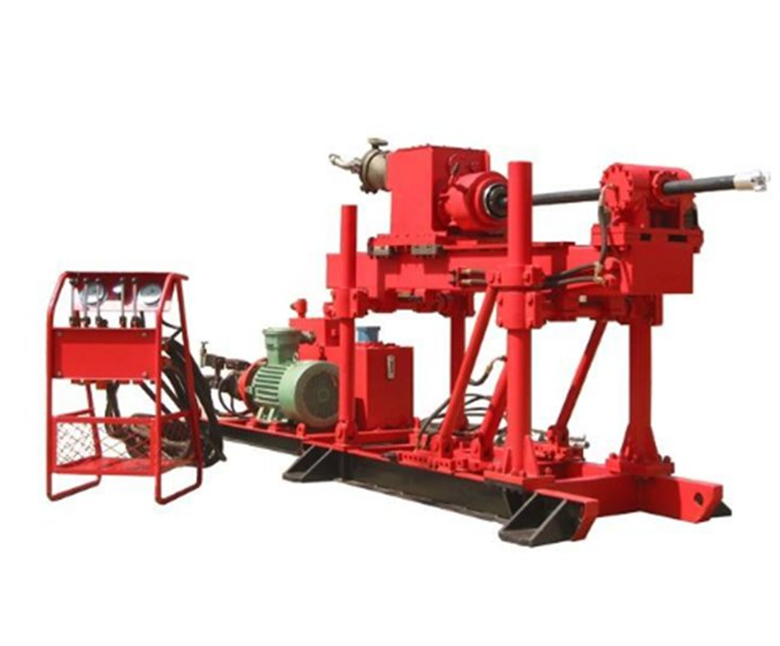 泵站、动力头、机架、立柱框架、钻具、操纵台。泵站、操纵台和主机分离,远离钻孔操纵台钻机,防止喷孔伤人,安全系数高